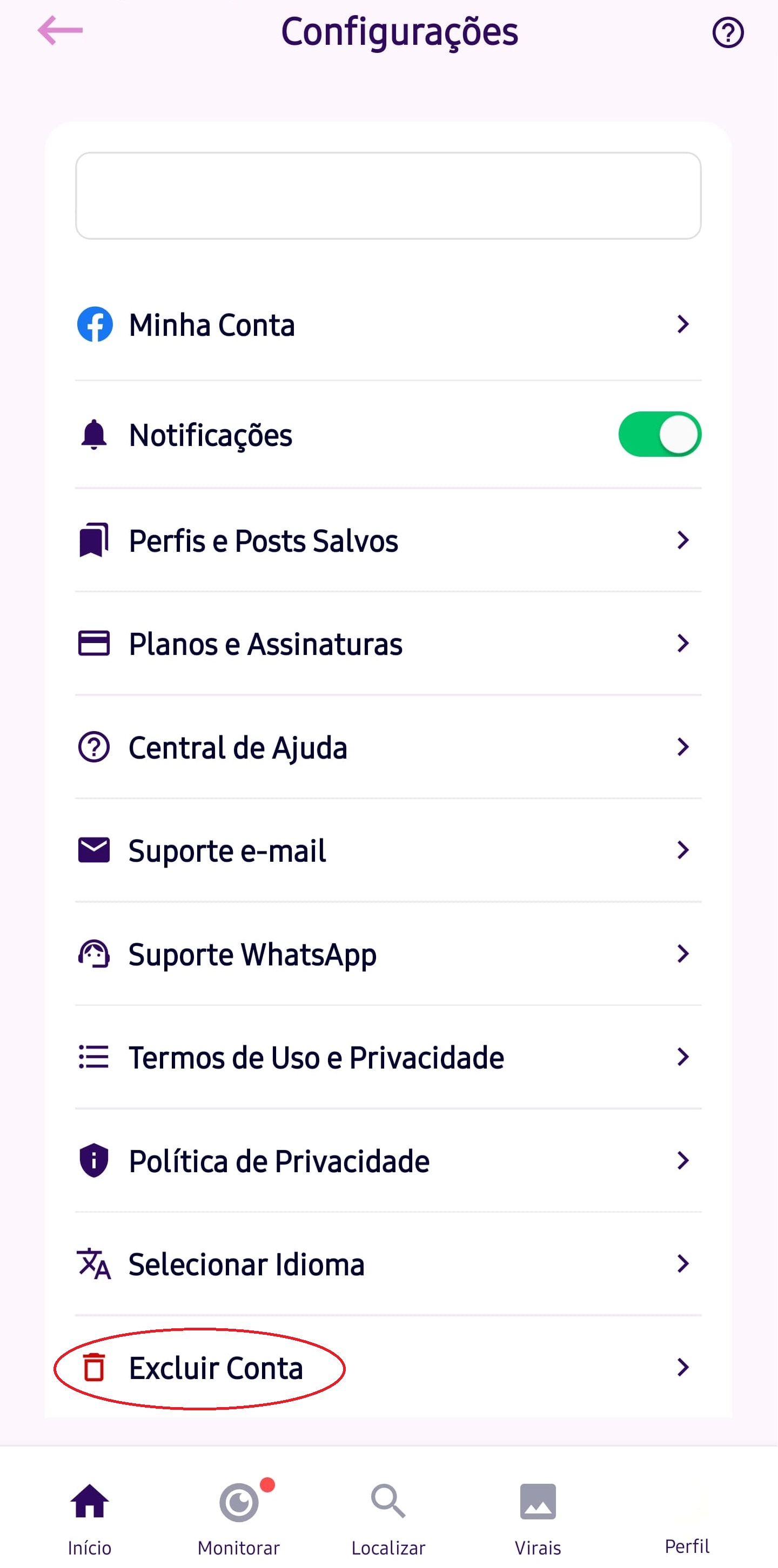 No menu de configurações, role para baixo até encontrar a opção "Excluir Conta" e toque nela.